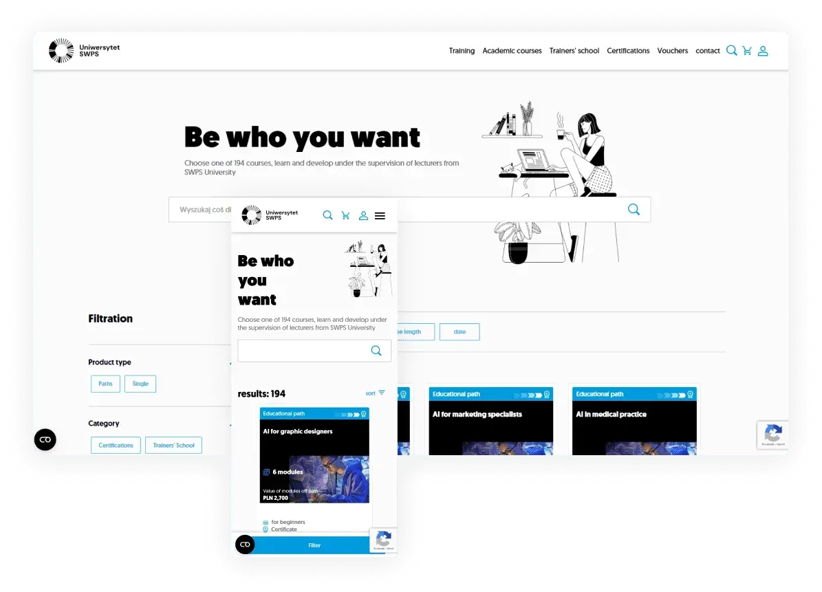 A custom e-commerce platform built on Salesforce Experience and Education Clouds for SWPS University, enabling course sales, personalised recommendations, and new revenue streams.