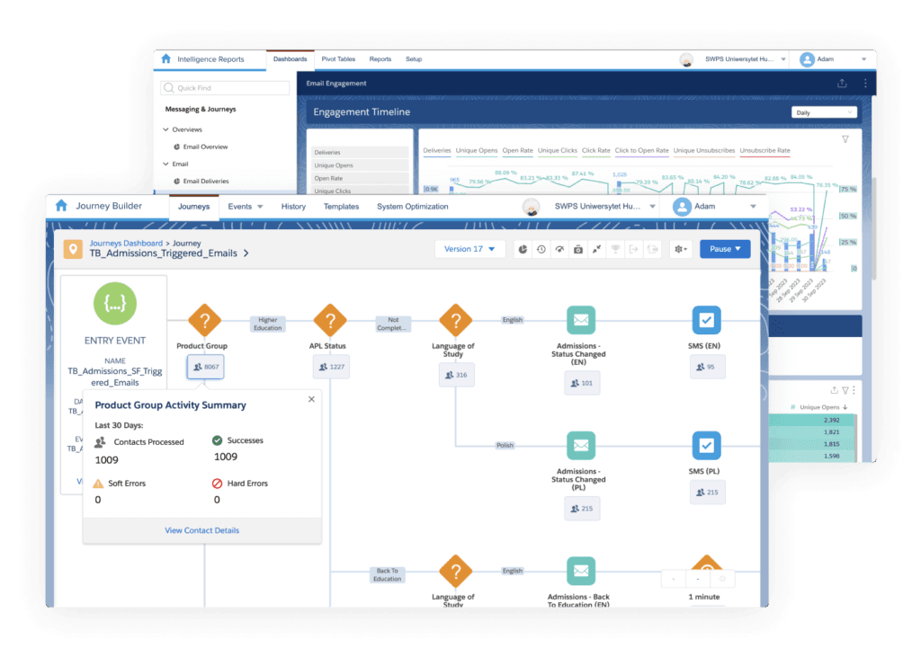 Wdrażamy Salesforce Education Cloud, który umożliwia instytucjom edukacyjnym skuteczne zarządzanie całym cyklem relacji z kandydatami, studentami i absolwentami.